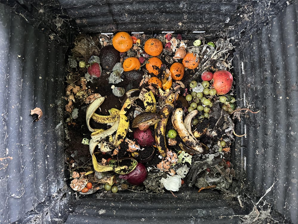 I started kitchen composting in March of 2023. I scraped and leveled a square of bare gray dirt in a corner of the back yard and bought a plastic vented compost box from Home Depot. After putting down a layer of twigs to help the compost aerate, I started dumping in scrap uncooked fruit and vegetables, rinsed eggshells, and coffee grounds. Nothing cooked, and no meat at all. No paper.