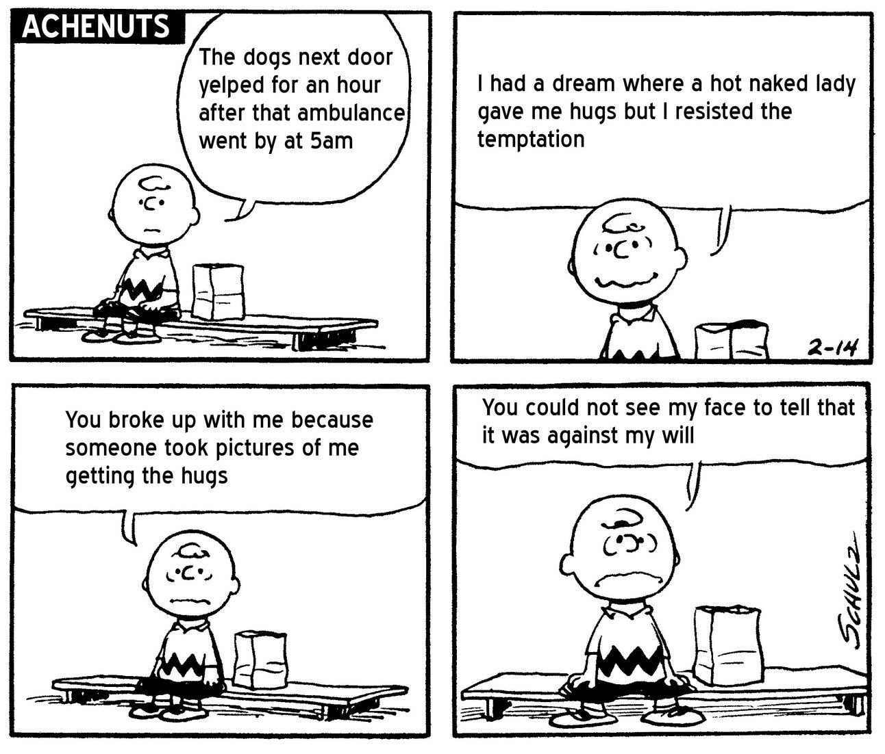 A busy morning and week so just a quick extra bit: as a longtime fan of Chris Onstad’s Achewood, some time ago I found myself compelled to insert dialogue from one of his old strips onto an even older Peanuts strip, producing this one-shot of Achenuts. Inspired homage or weaksauce two-things joke? Only history can judge me!