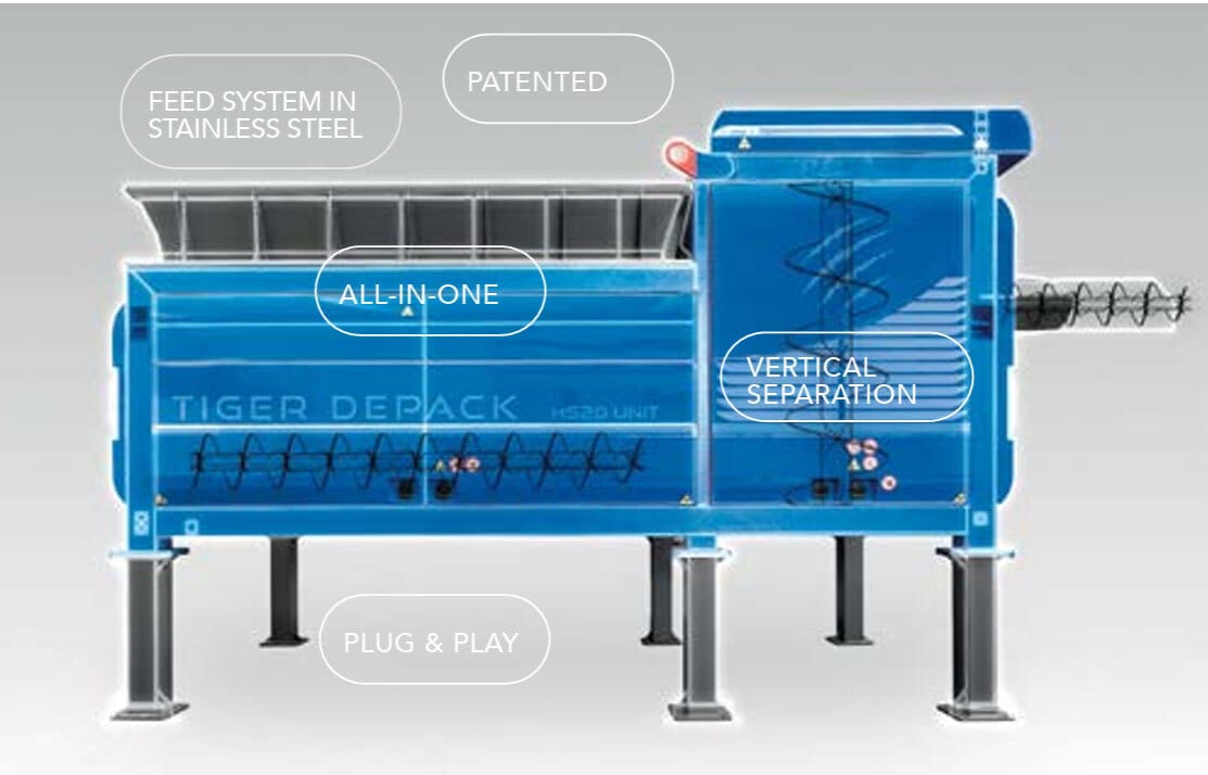 The Tiger depacker and similar machines focus on “size reduction” (via those auger blades in this case) to separate inputs into useful outputs. Which seems like an obvious recipe for creating really great amounts of microplastics in all your outputs, good and bad. But some newer approaches instead favor the “minimum fragmentation” approach, using air and water or percussive, squeezing paddles to separate organics from plastic and other contaminants. This should theoretically create fewer microplastics in the outputs. No doubt conscious of this issue with their own machines, Tiger now sells an add-on accessory that’s supposed to filter out microplastics produced by its depackers, though there’s no public data on how effective the accessory is, or if it’s in use anywhere yet. (Tiger did not respond to what I considered an extremely polite question on the matter.)