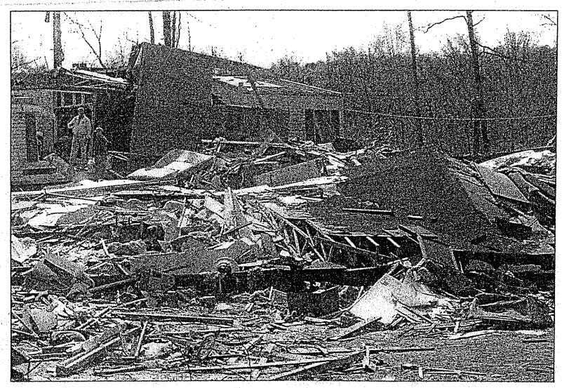 After, I went out with family and friends to deal with some of the damage, in a rural area. That tornado was a jumper, erratic, changing direction and lifting back up into the sky, and coming down again like a hammer. It would tear through a stretch of woods or along a road, then jump, and re-descend a couple miles away.