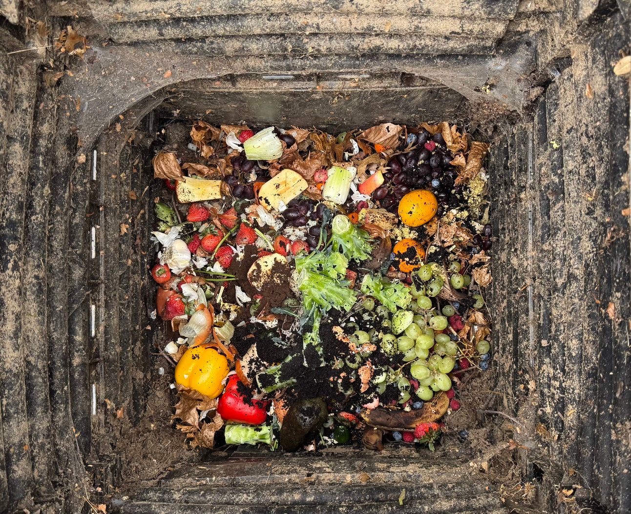 This week, shameful loss of leftover produce in the fridge while we were out of town, plus lots of cooking: grapes, oranges, peppers, eggshells, broccoli stems, garlic, coffee grounds, strawberries, apple cores, blueberries, onions, celery, raspberries, avocado peel.